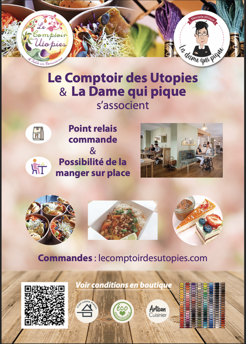 - Récupération dans notre boutique partenaire La Dame qui Pique (2€) et la possibilité de vous installer déjeuner sur place pour 1€ de plus