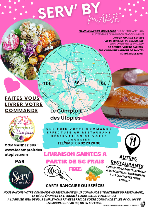 Validez votre commande sur la boutique en ligne et appelez notre partenaire "Serv' by Marie" au 06 02 23 20 36 pour organiser votre livraison.